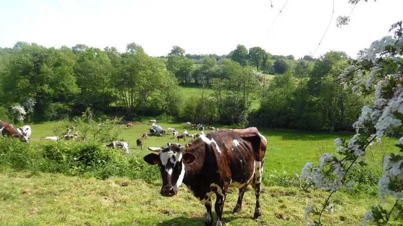 1. Du parking de l’église, prendre le chemin herbeux (chemin des ifs) vers l’ouest et qui passe près d’une ferme. Après 1 Km, on parvient sur une route. Tourner à droite puis traverser la D511 pour emprunter le chemin cour Malis. Tourner à la 1ère à droite, chemin de la Chesnaye. A l’entrée d’une propriété, le chemin devient en terre pour descendre vers le bois de la Motte. On passe un ruisseau à gué puis on remonte dans le bois en lisière.
