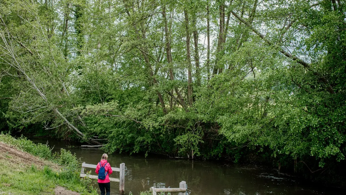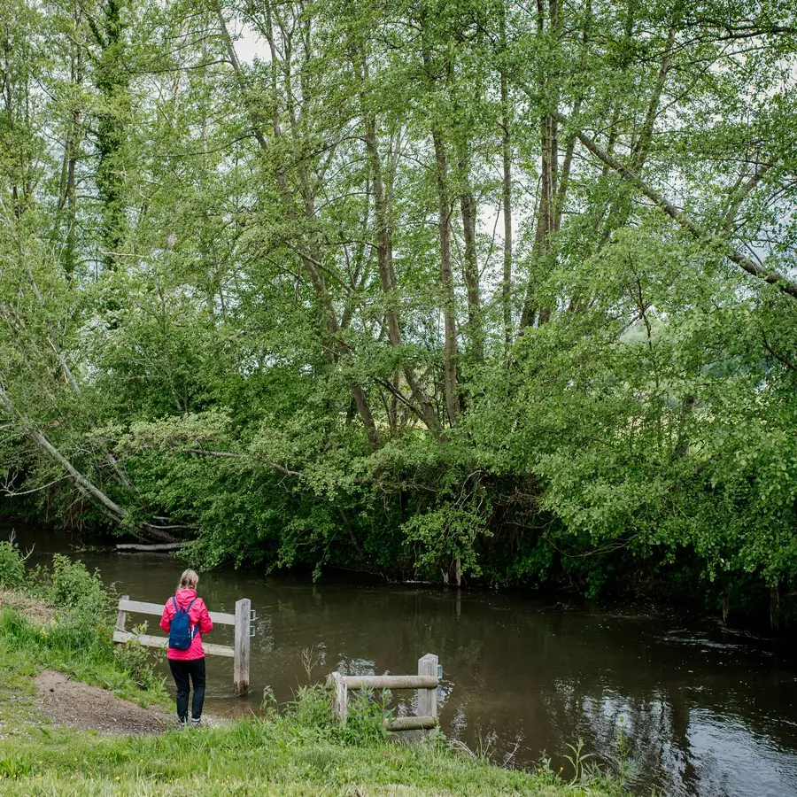 Le parcours suit le balisage jaune ou bleu expliquant les « Petits secrets de Saint-Martin-de-la Lieue en 13 panneaux. Départ parking de la Mairie de Saint Martin de la Lieue (panneau N°1). Prendre à gauche direction Lisieux sur 100m. Monter prudemment l’escalier en bois à droite, caché dans les feuillages entre 2 bâtiments. Arrivée dans le sous-bois, en haut (panneau N°2) poursuivre à droite jusqu’à la route goudronnée (panneau N°3). Monter à gauche, en haut tourner à la droite Chemin des anciennes sablières, goudronné jusqu’au panneau N°4 puis herbeux jusqu’au panneau N°5. Après une longue descente, vous arrivez au panneau N°6. Tourner à droite et rejoindre le bourg. Le traverser en vous dirigeant vers la gauche jusqu’au panneau N°7 « Manoir d’Argences ». Aller jusqu’au rond-point et suivre la route de Fervaques jusqu’à l’église de Saint-Martin-de-la-Lieue datant du Xè et XVIè siècle (panneau N°8). Revenir sur vos pas. 100 m après prendre le chemin à gauche (balisage jaune) « Chemin de la blanchisserie ». Traverser la Touques sur un pont de bois. Au croisement avec la D579, prendre à droite et tout de suite à gauche par le chemin herbeux qui longe le cours d’eau (panneau N°9). Prendre à droite puis à gauche rue Robert Lecorneur dans le lotissement. A l’angle, retrouver la route qui longe la Touques (panneau N°10 et plus loin panneau N°11) et arriver au domaine Saint-Hippolyte, panneau N°12. C’est là dans les méandres de la Touques que Louis Martin prit une carpe de 2.170 kg. Remonter vers la droite pour rejoindre la D64. Au bout, à droite, rejoindre le point de départ.