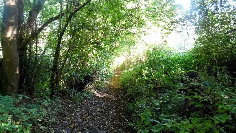 4- A la hauteur de la mairie de Cordebugle, s’engager à droite dans l’allée du Bois de la Roque sur 200m. Continuer dans le sentier à gauche et laisser les contre-allées. Déboucher en lisière d’un taillis sur un chemin bitumé tourner à droite. Après plus d’un kilomètre, chemin des Tiques, descendre à droite un chemin en lisière de bois signalé d’une priorité routière chemin de la Caillerie. Arriver dans la vallée du Courtonnel et passer sur un pont. Sur la route, tourner à gauche. Attention entre 4 et 5 humide en hiver.