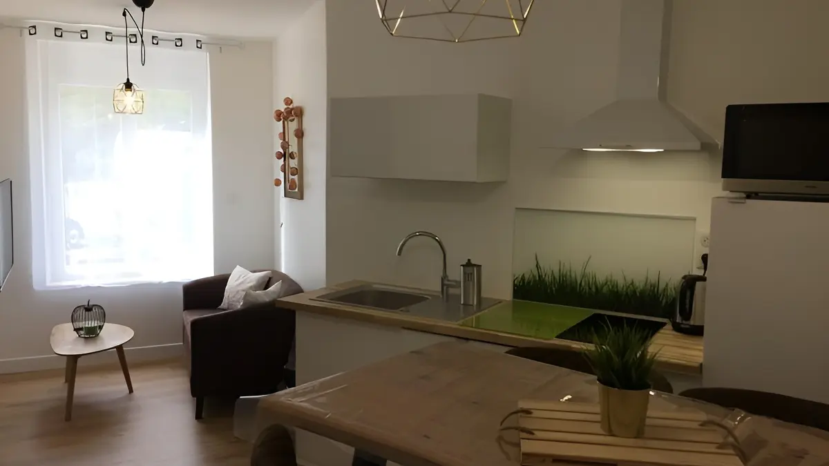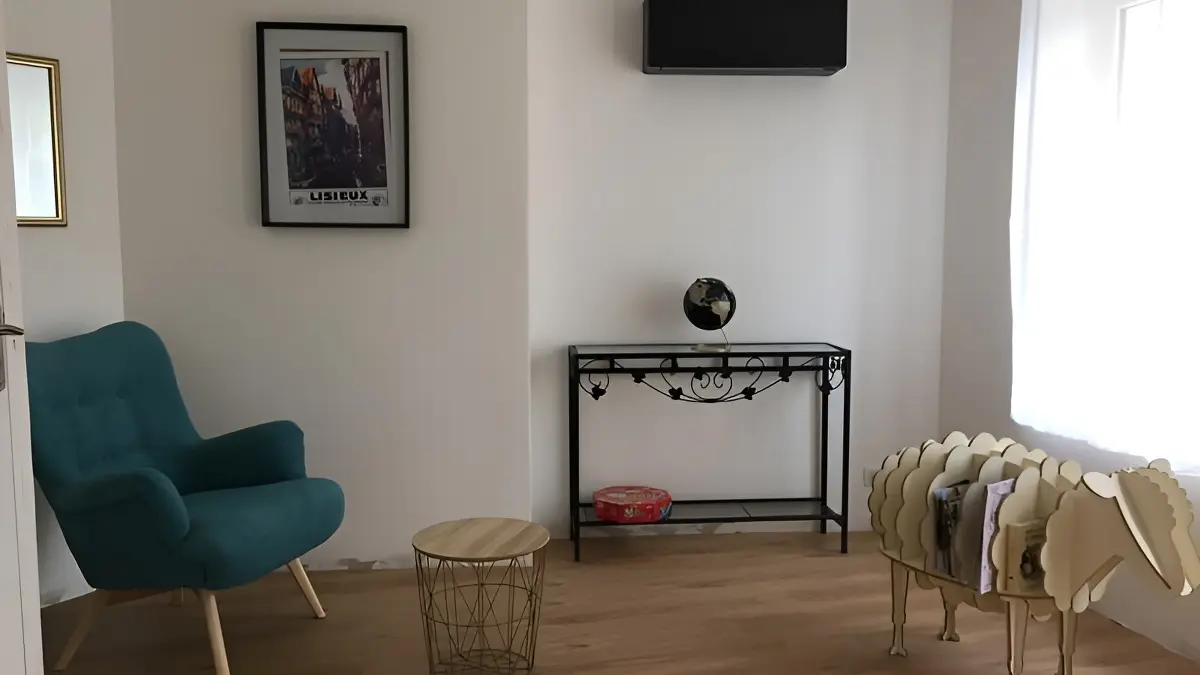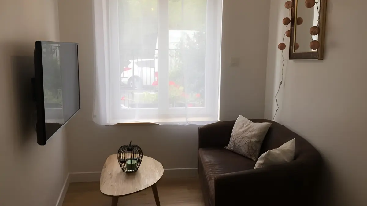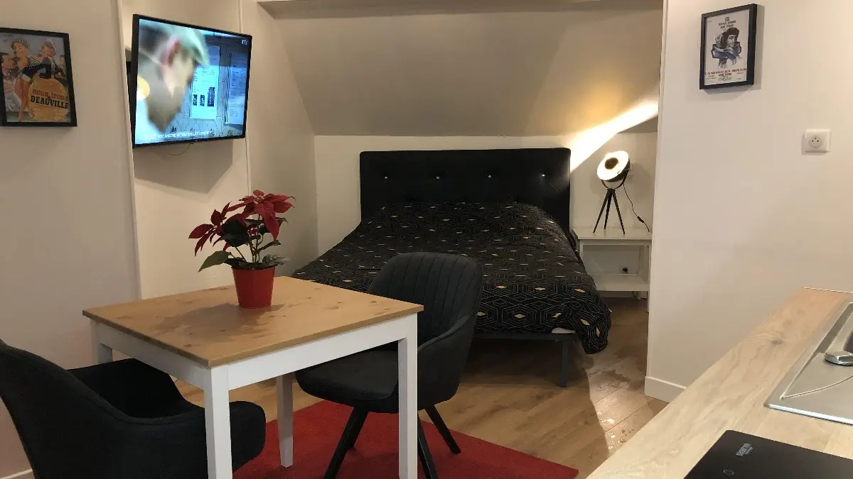 En centre-ville de Lisieux, au calme, dans un cadre verdoyant, charmant studio, entièrement équipé, tout confort pour 2 personnes.