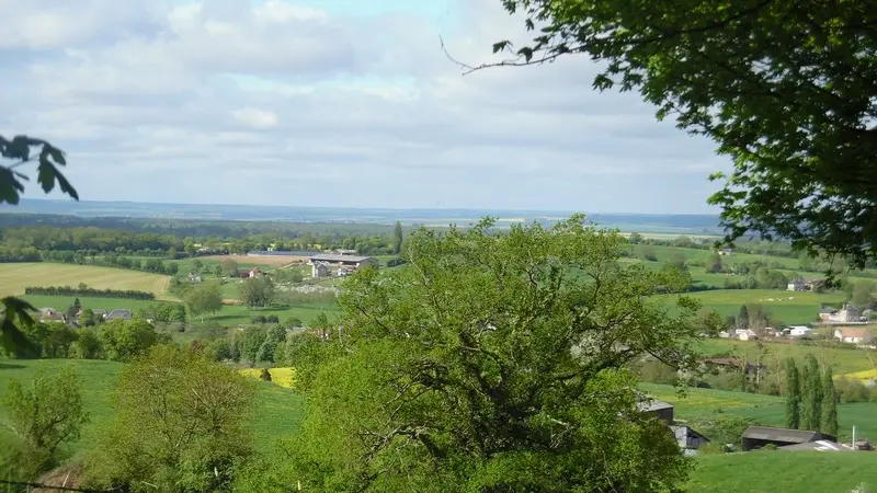 Au bout, à l’entrée d’une propriété, emprunter à gauche le chemin creux qui descend, toujours en bordure du bois. Celui-ci remonte ensuite pour rejoindre une route goudronnée qu’on suit par la droite sur 50 m. Tourner à gauche dans un autre chemin de terre qui oblique ensuite à droite puis descend jusqu’à la D 111.
